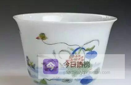 《晋书·陶潜传》里陶渊明“不为五斗米折腰”,乾隆皇帝却把这句话做成了杯子——蓝釉轧道花卉纹折腰杯。腰腹折收,聚香聚味,手握处弧线刚好贴合掌心。同治粉彩花卉六方折腰杯,六方造型挺拔,方中带圆,把“不阿世”的文人精神喝进了肚里。