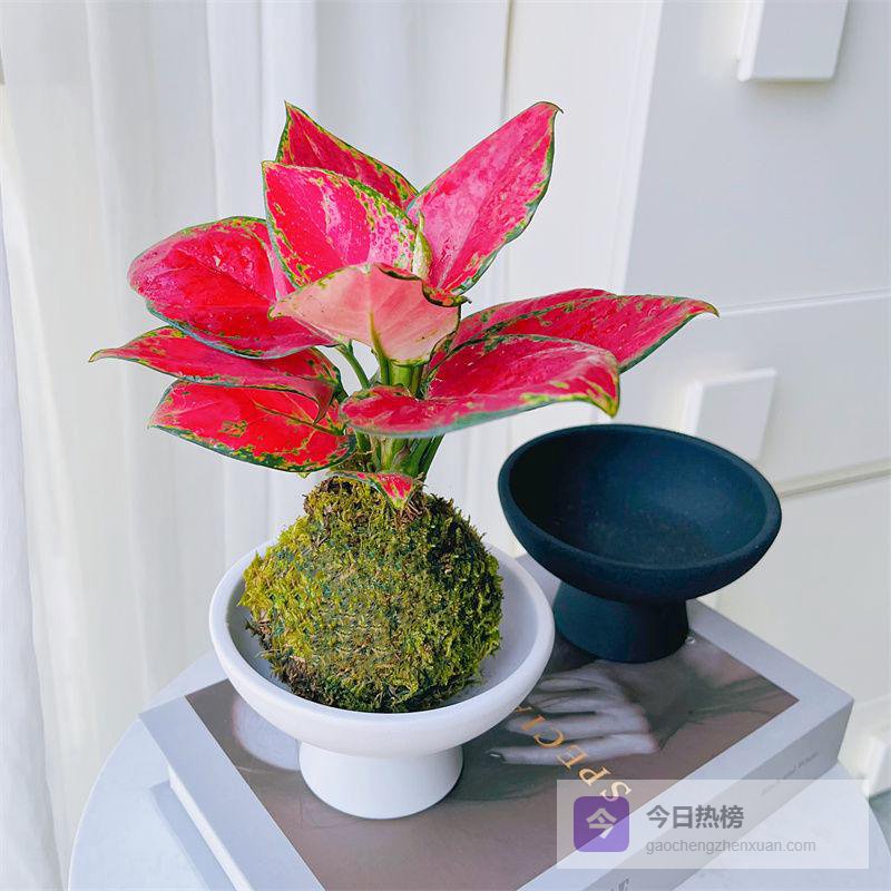 三、吉利红苔藓球:桌面上的莫奈花园 水培植物的清爽感+苔藓的毛绒质感+如意皇后品种的渐变红叶,这个组合放在办公桌上就像把印象派油画框进了玻璃杯。特别的是它的种植方式:根系被包裹在圆润的苔藓球里,透过清水能看到银白色须根如水晶丝般舒展,比传统花盆多了三分禅意。