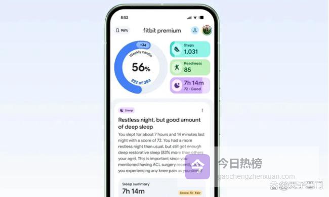 免费用户在新设计中可以访问核心健康、健身和睡眠追踪功能。高级订阅者还能获得教练、定制健身计划以及更深入的个性化服务。