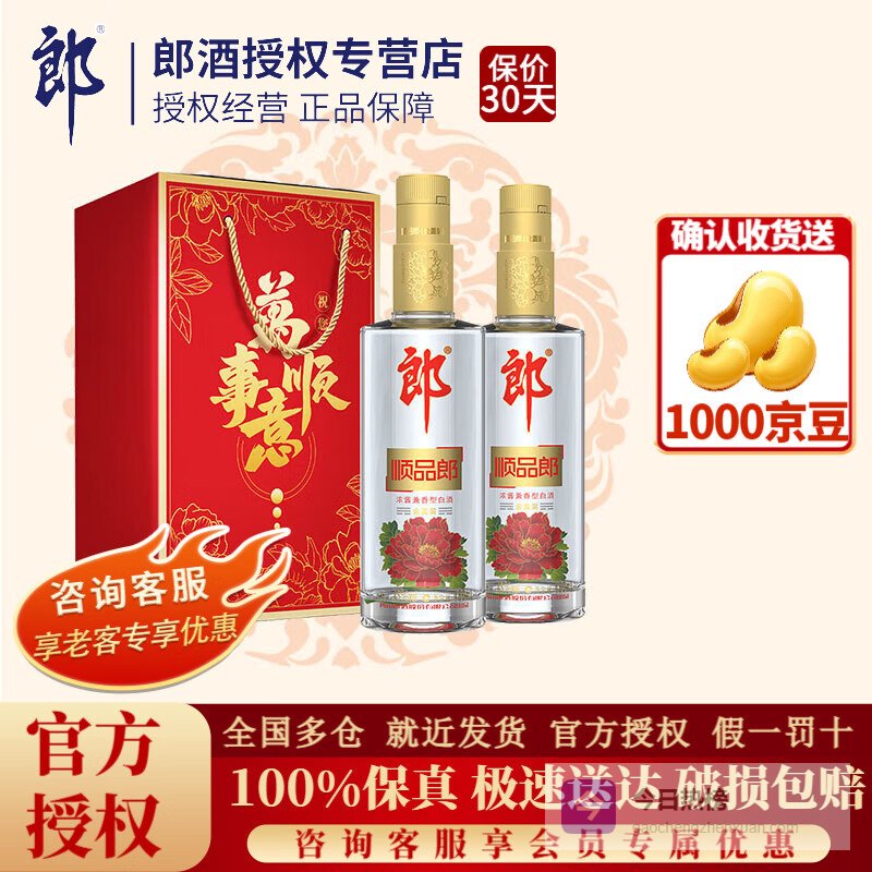 郎酒酒45度中度金盖顺品郎480浓酱兼香型纯粮食四川光瓶口粮白酒 45度 480mL 2瓶 双支礼盒装¥