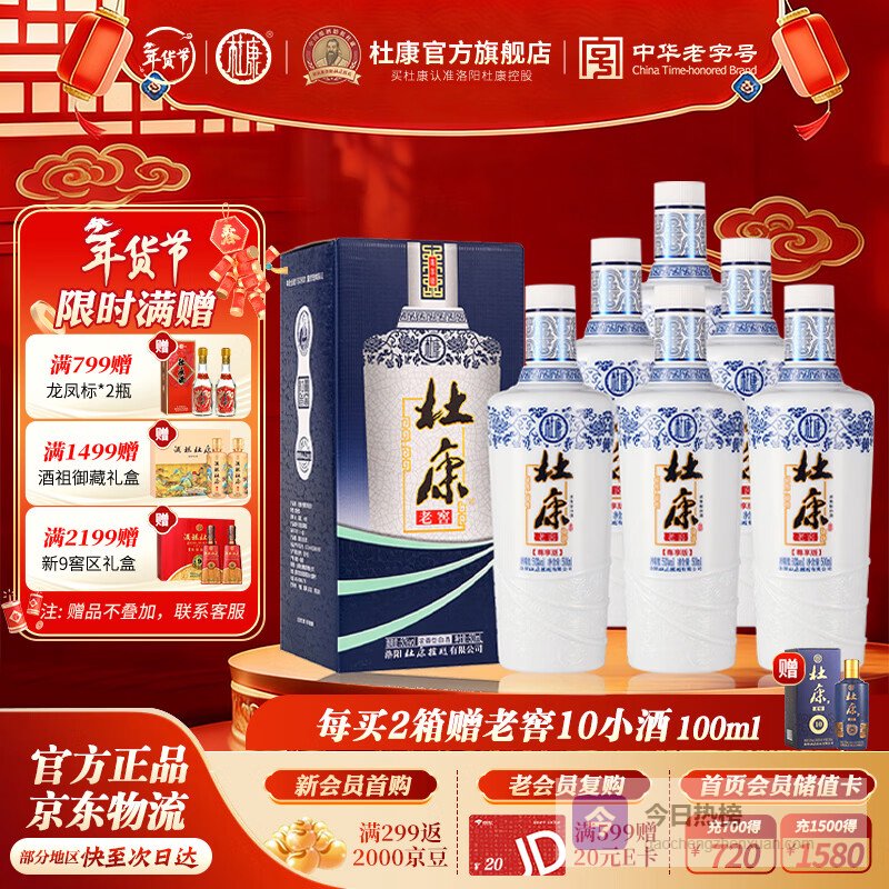 杜康老窖尊享版 浓香型白酒整箱装 口粮酒 纯粮食酒 高粱酒 年货送礼 50度 500mL 6瓶 整箱装送礼白酒¥