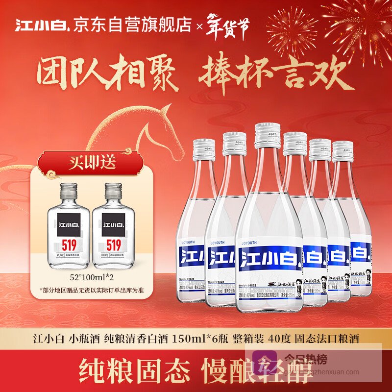 这款江小白150ml白酒包装小巧便携,非常适合聚会自饮,随时随地享受纯粮好酒。它采用精选高粱,经过严格工艺酿制,确保酒体纯正自然。小瓶设计更方便分量控制,既适合尝鲜,也便于携带外出,满足不同场合的需求。