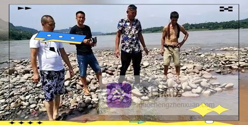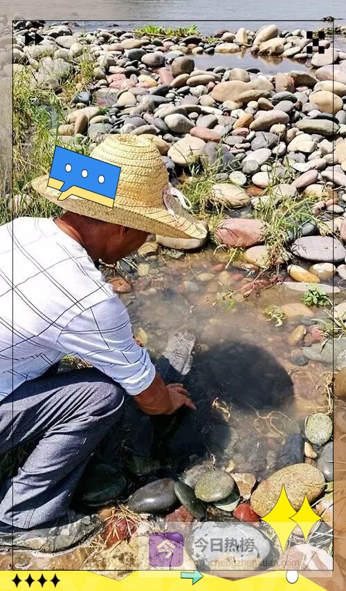 发现娃娃鱼的长江边的鹅卵石河滩