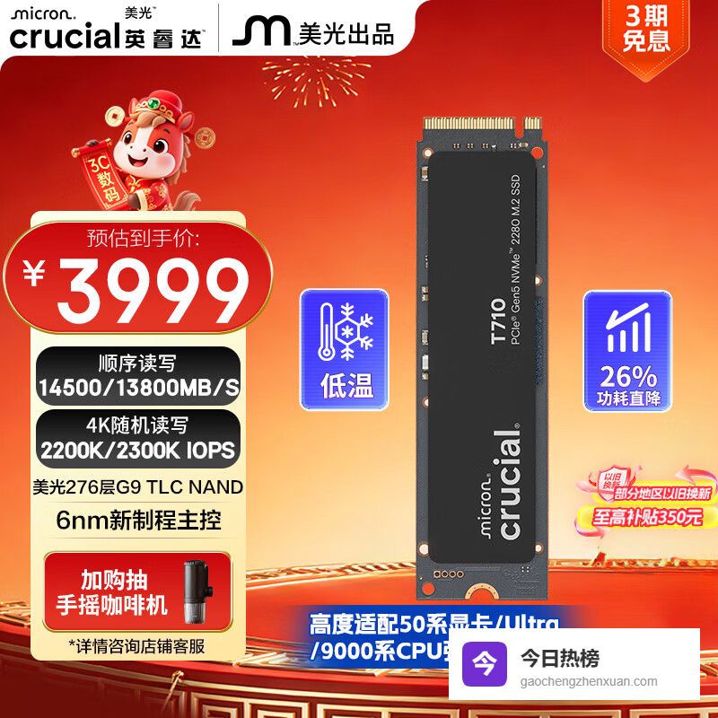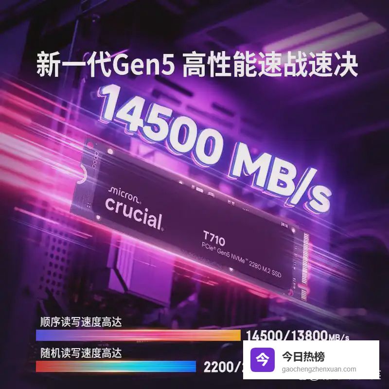 这款Crucial T710 SSD,采用PCIe 5.0接口,就像开车换了火箭引擎,数据传输快到飞起。顺序读取可达14500MB/s,写入也有13800MB/s,加载游戏、传输大文件几乎不用等,体验感直线上升。无论是编辑视频还是跑大型软件,一秒都不拖泥带水。