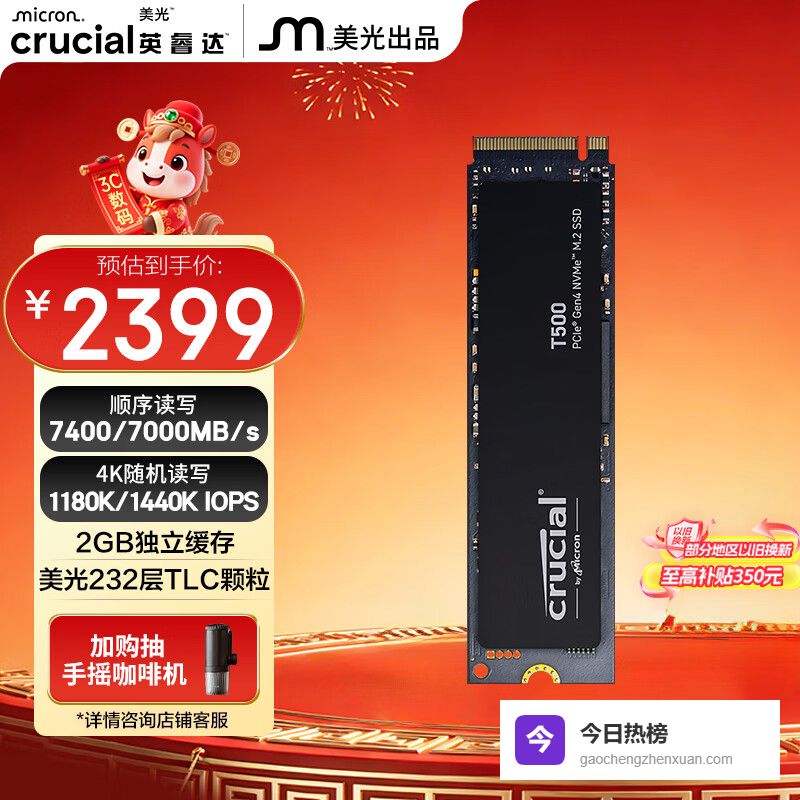 英睿达(crucial)美光T500 Pro 2TB SSD固态硬盘 M.2接口(NVMe PCIe4.0*4)读速7400MB/s 台式机笔记本硬盘¥