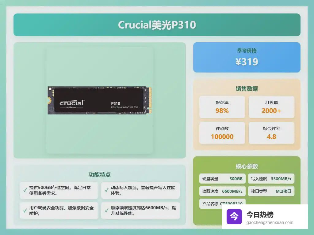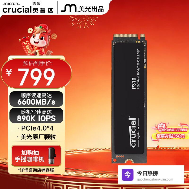 英睿达(crucial)美光P310 500GB SSD固态硬盘 M.2接口(NVMe PCIe4.0*4)读速6600MB/s 台式机笔记本硬盘¥