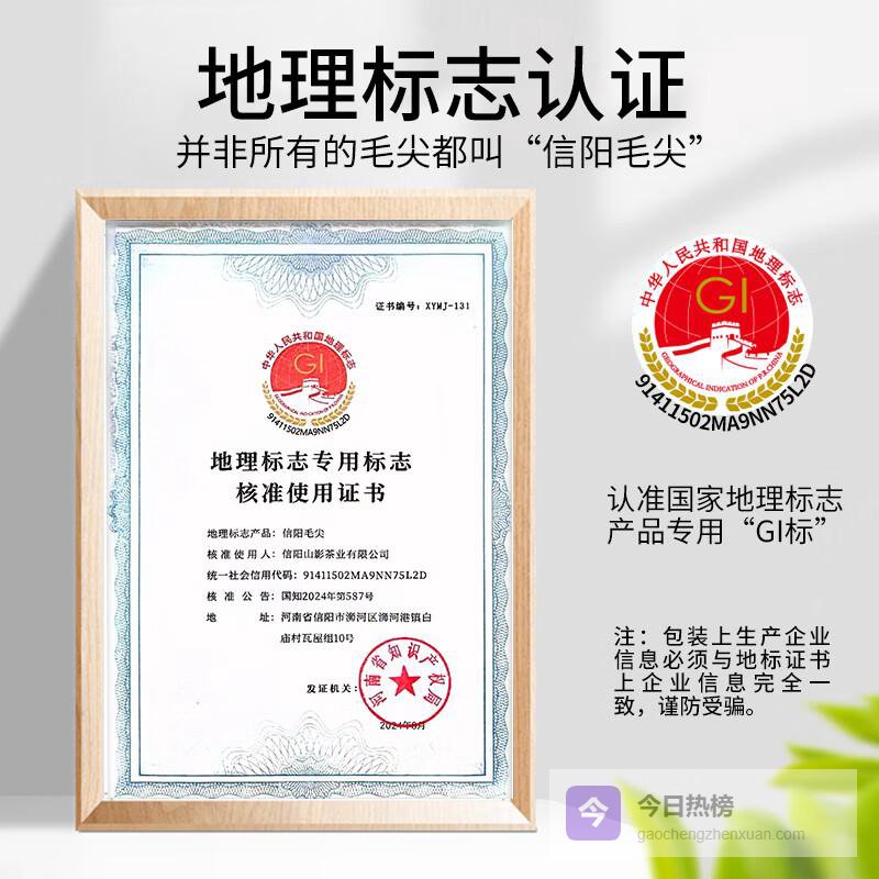 细节体验 信阳毛尖素有"绿茶之王"的美誉,这款茶叶冲泡后汤色清澈明亮,香气清高持久,滋味鲜爽回甘,叶底嫩绿匀整。明前茶的鲜爽度和营养价值都达到最佳状态。