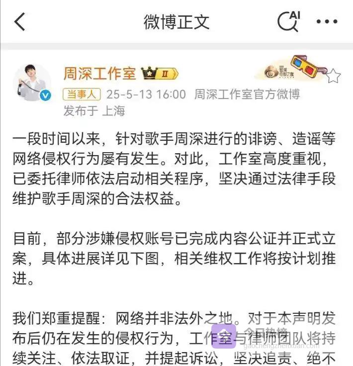 有人给周深扣上“小题大做”“玻璃心”的帽子,甚至嘲讽他“钱赚够了就飘了,连基本的舆论承受力都没有”;更有网友跟风造谣,称他“维权是因为被戳中痛点,那些谣言都是真的”,让周深陷入“越维权,越被黑”的困境。这与大衣哥的经历如出一辙:同样被恶意侵权,同样无奈维权,同样赢了官司却输了口碑,同样是受害者,却成了网友口中的“众矢之的”。