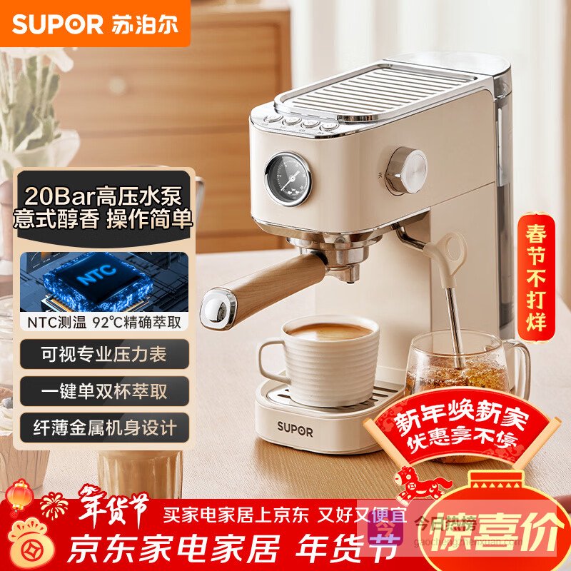 苏泊尔(SUPOR)意式家用浓缩萃取半自动咖啡机 礼物送长辈 办公室商用奶泡 SW-CFB302¥