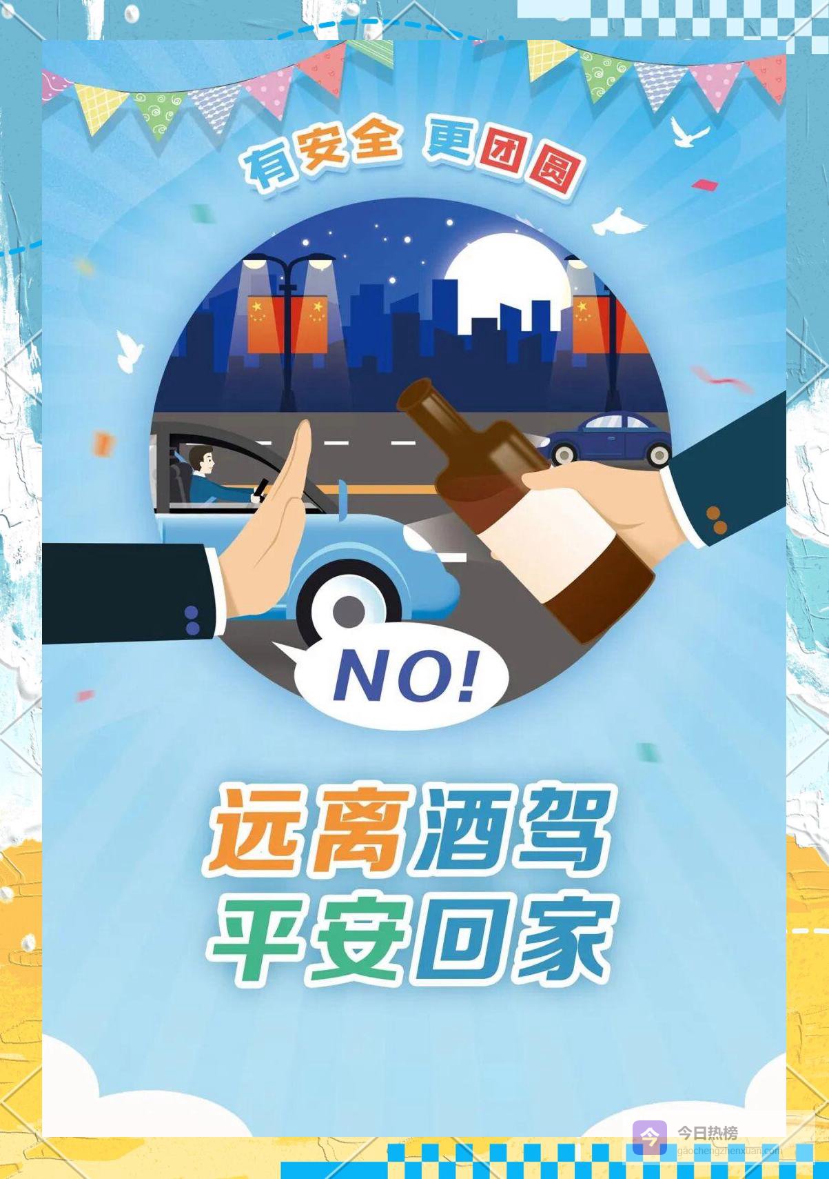 【 拒绝酒驾 】中秋团圆酒可以少喝,但方向盘不能离手;喝酒不开车,开车不喝酒是底线也是红线。