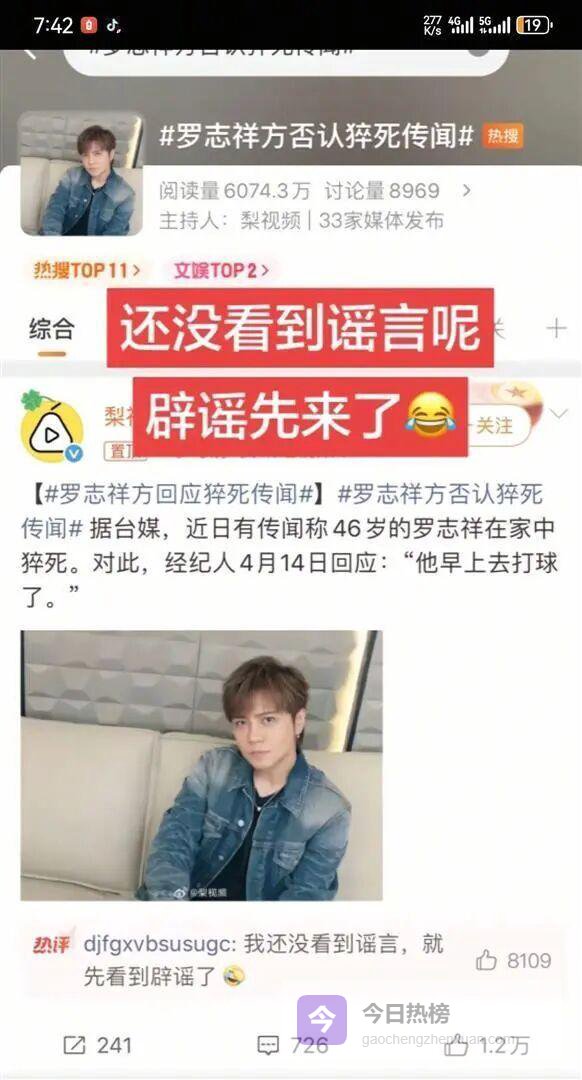 而罗志祥本人自2020年丑闻曝光以来,更先后被传抑郁自杀、车祸去世、重病瘫痪,每一次都需要本人或团队出面澄清。这条“被死亡”链条,几乎与他的事业跌宕同步延伸。
