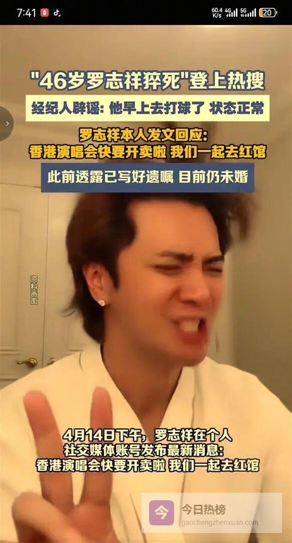 2026年4月14日清晨,一条消息如同投下了一枚重磅炸弹——“46岁罗志祥在家中猝死”毫无预兆地冲上微博热搜榜首,不到半天时间便吸引超千万人次围观。