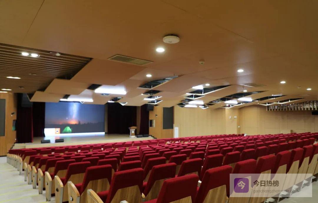 报告厅灯光璀璨,开学典礼、英语剧、科技节都将在这里上演。