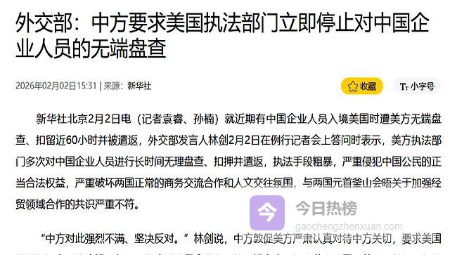 面对这种组合拳,中方的反应很有意思,可以说是相当克制,也相当有分量。第二天,也就是2月2日,咱们的外交部发言人林剑在例行记者会上被问到这事儿。他没有顺着石油的话茬往下接,而是针对美方那些盘查遣返的恶劣行径,掷地有声地回了八个字:“强烈不满、坚决反对”。这八个字,字字千钧,直接把话题拉回了正轨。