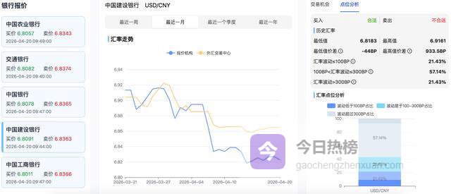 主要经济数据美国核心PCE物价指数在2025年全年上涨2.6%,与通胀目标接近,但2026年3月CPI预期跳升,成为市场焦点。预期已驱动汇率波动:美元兑日元因通胀预期升温一度飙升,但因美联储“不加息”立场明确,涨幅被部分回吐。风险提示日本央行干预风险:若美元兑日元突破160,日本财务省可能动用外汇储备干预,引发日元短期剧烈反弹。美联储政策预期突变:若美国3月CPI数据超预期(>3.5%),市场可能重新押注“更久更高利率”,导致美元短暂反弹。中东局势升级:霍尔木兹海峡若被封锁,油价突破120美元/桶,将引发全球通胀恐慌,人民币可能面临输入性通胀压力,但因资本管制与顺差支撑,贬值幅度或可控。特别国债发行扰动:4月24日1190亿元特别国债发行可能引发国内资金面收紧,间接影响人民币流动性预期,需关注央行对冲操作。重要国际外汇报价