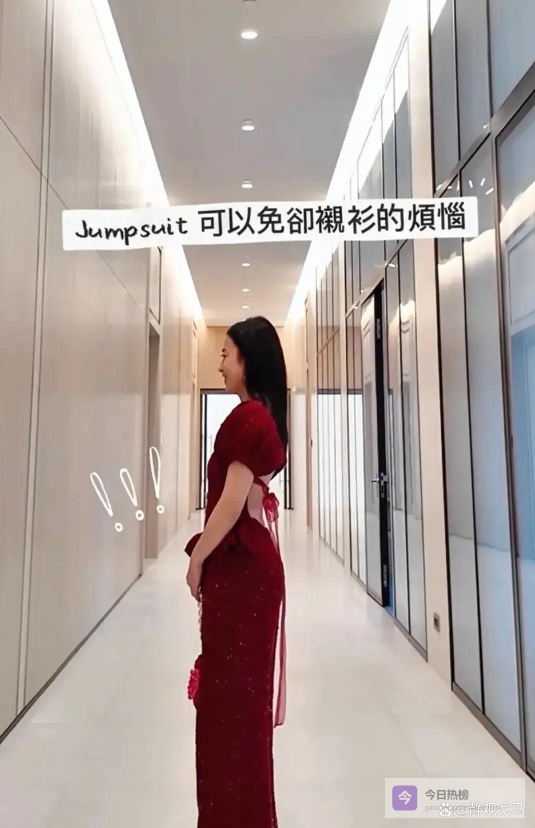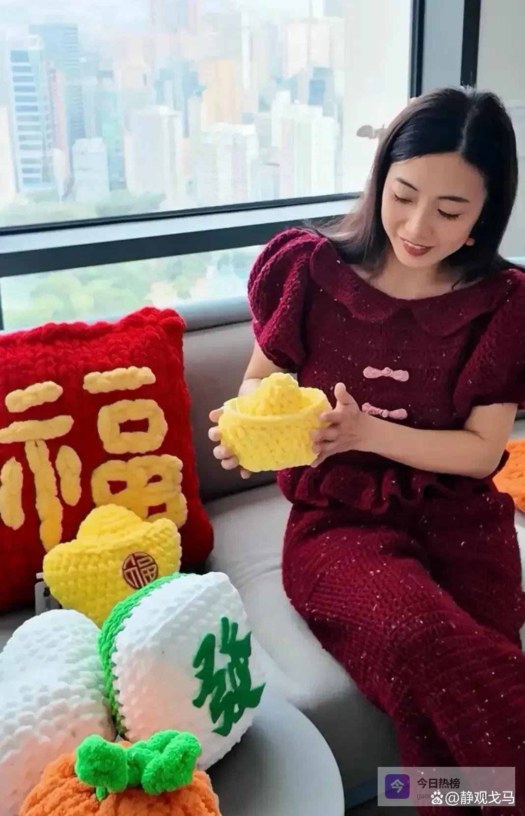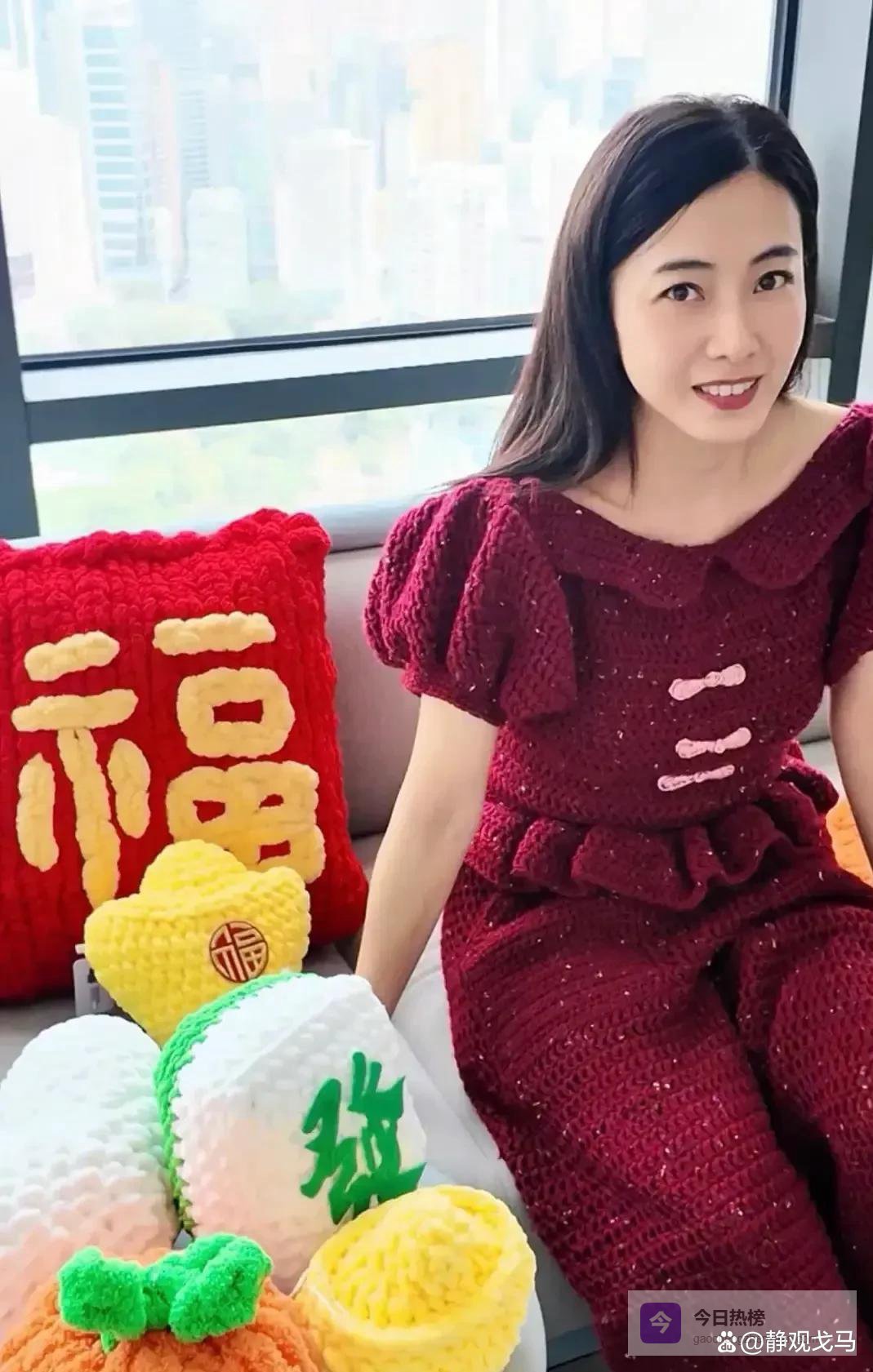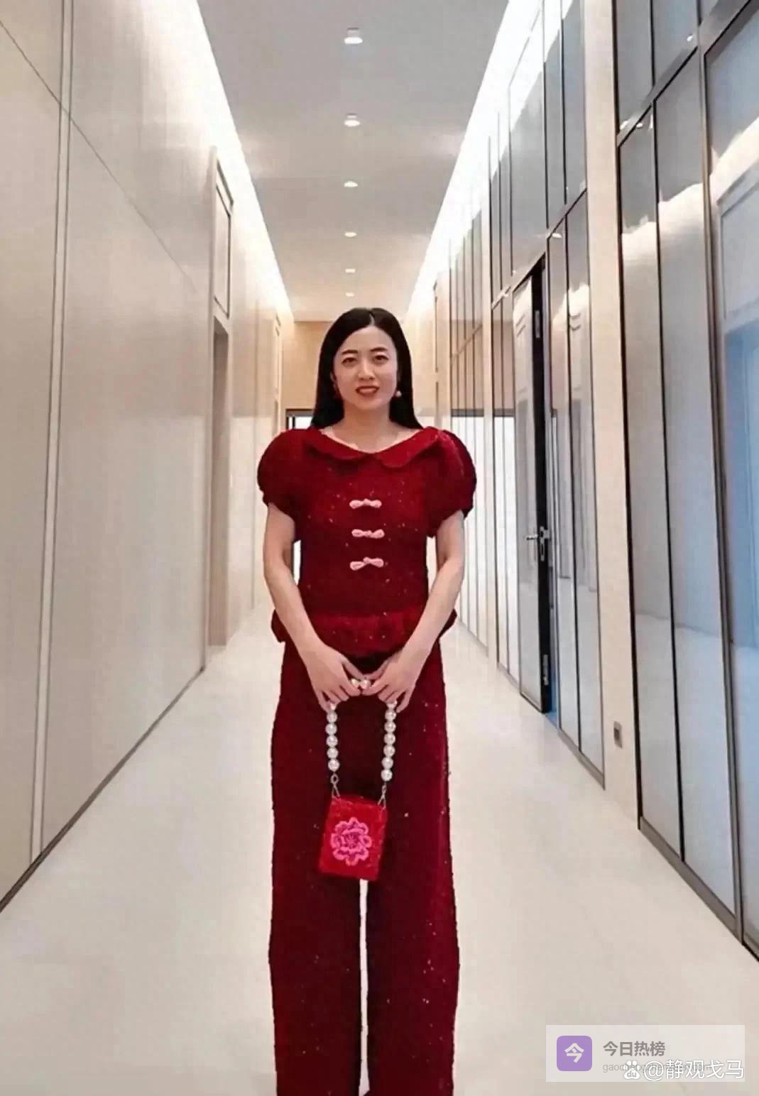 有个四十多岁的女人,家里特别有钱。过年的时候她没穿那些很贵的衣服,自己用钩针做了条红的连体裤。她在网上发了照片,好多人都在看。那衣服领子是圆圆的,袖子鼓起来像南瓜,还系了个粉色的结。那些针脚一看就是手缝的。