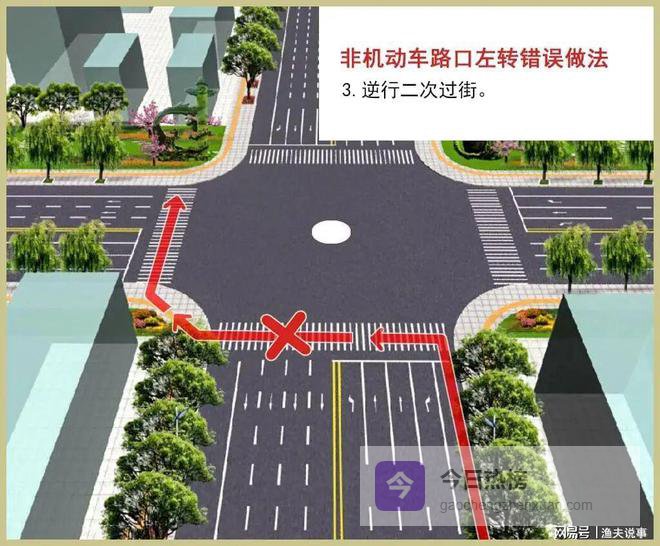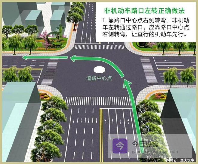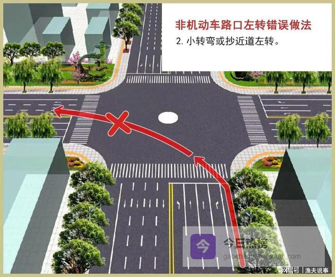 还有的采用小转弯或抄近道的方式,在道路中心点左侧左转。这点尤其需要注意。