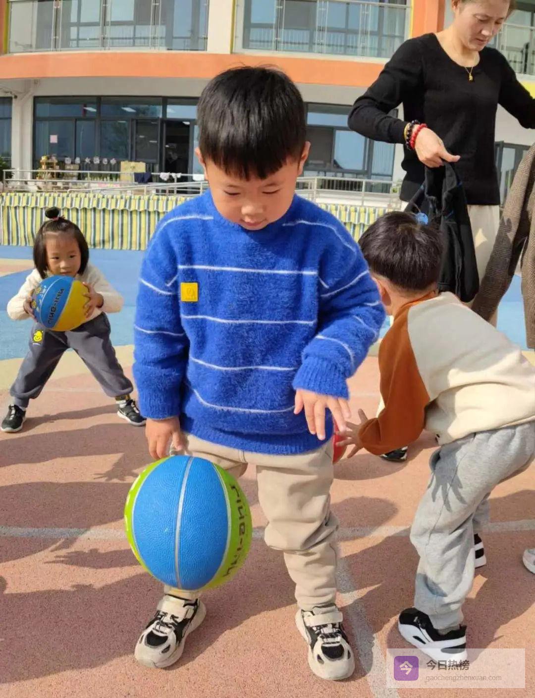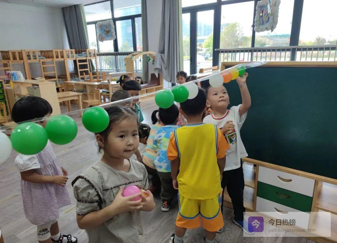 操场、走廊、自然角,甚至吊灯下的装饰球,都被一双双小眼睛锁定。原来,球不在玩具箱里,而在生活的每一个角落。