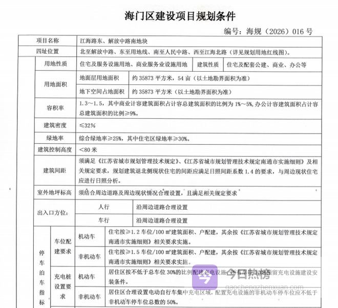 从地块出让条件来看,这是2026年以来海门老城少见的优质低密宅地。容积率1.3-1.5,建筑密度≤32%,建筑限高<80米,未来将打造低密宜居的住宅产品,适配改善型居住需求。