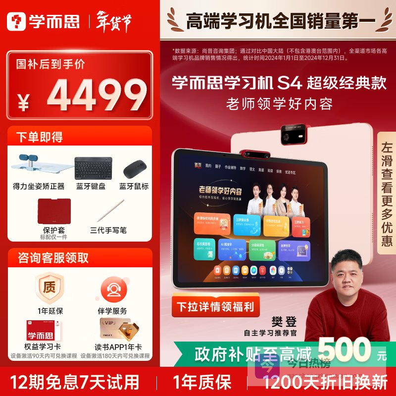学而思超级经典学习机S4 AI学习机 护眼大屏 全学段 校内同步教材 九章大模型 支持deepseek 13.2英寸 S4 (8+128G)¥