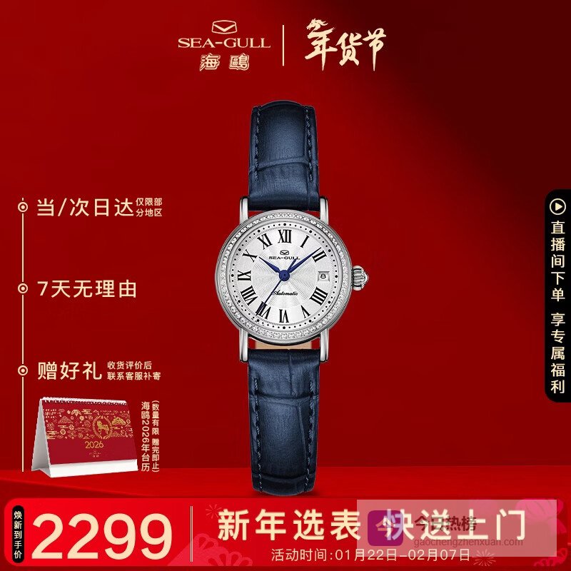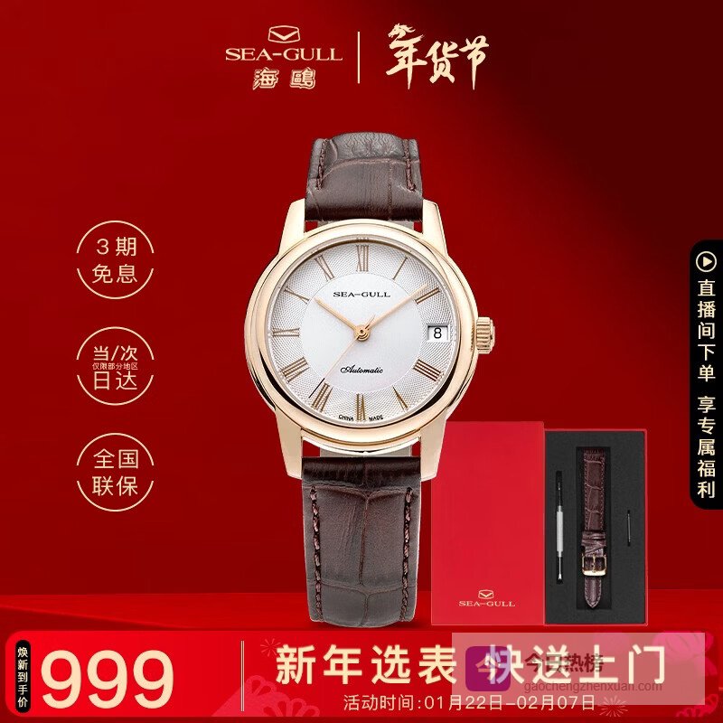 海鸥(SEAGULL)手表女士自动机械表 国民日历女士手表 生日礼物女表716.417L¥
