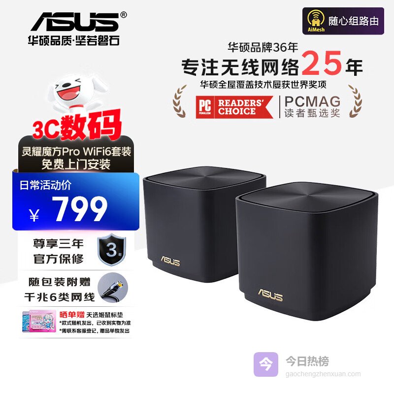 华硕(ASUS)灵耀魔方Pro路由器组网神器 Mesh路由器 分布式路由器千兆无线路由器 OP DIYB XD4 PRO/黑色双支【上门装】¥