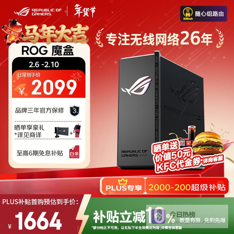 华硕(ASUS)【国家补贴】ROG魔盒WiFi7电竞无线路由器(9个2.5G口MTK AI内芯 2GB DDR4内存)Aimesh随心组路由¥