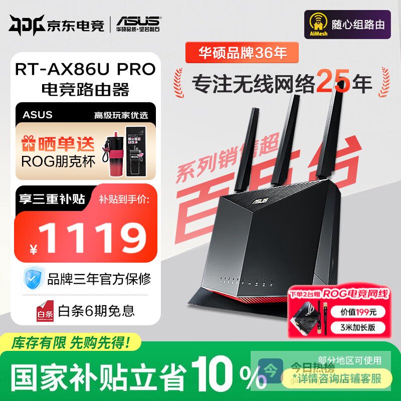 华硕(ASUS)国家补贴 RT-AX86U Pro 双频5700M全千兆电竞路由器 wifi6无线路由千兆穿墙 Ai路由器 金榜路由 RA 店长推荐AX86U Pro【博通四核2.0G】¥