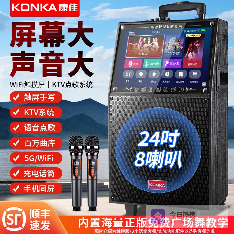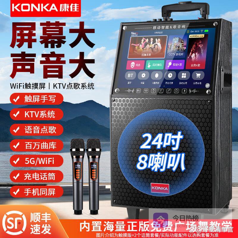 【品牌专营】康佳广场舞音响带显示屏幕无线话筒家用唱歌卡拉OK一体机户外直播演出声卡网络触摸点歌视频拉¥