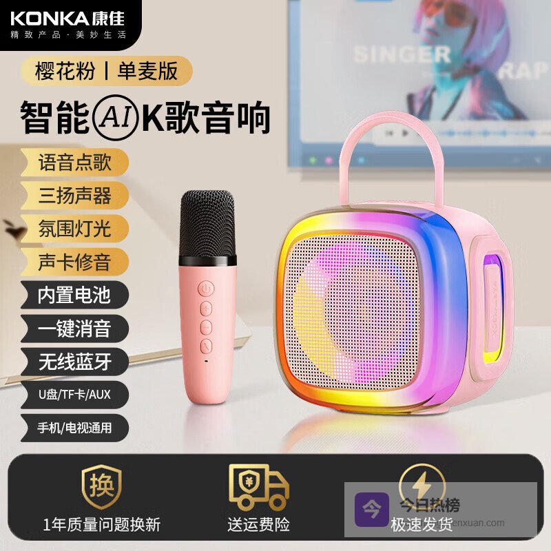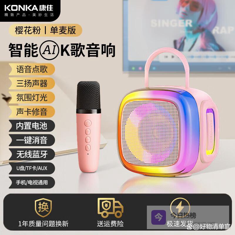 康佳麦克风哪款最值得入手?第一款:康佳一体式K歌麦克风 樱花粉标准版