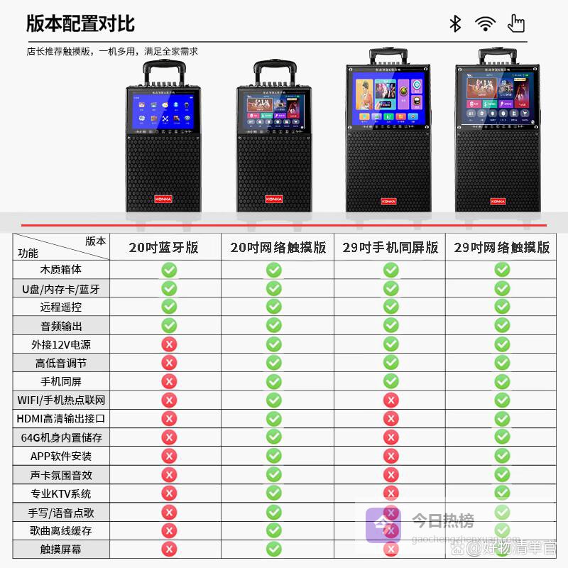 高清大屏显示:29吋的大屏幕设计让歌词和视频内容一目了然,提升了使用的便捷性。无论是在室内还是户外,清晰可见的显示效果都能增强观众的参与感,让每一位听众都能尽情享受音乐盛宴。这样的设计使得聚会气氛更加活跃,互动更为密切。