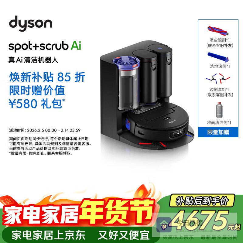 【京东自营】戴森【重磅新品】Spot+ScrubAI扫地机器人智能吸尘机器人吸尘器扫拖一体全自动清洗¥