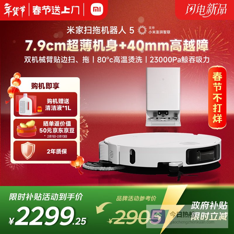 【京东自营】米家【年度重磅新品】小米扫拖机器人5超薄机身高越障高温洗烘自清洁智能家用扫地机器人扫拖一¥