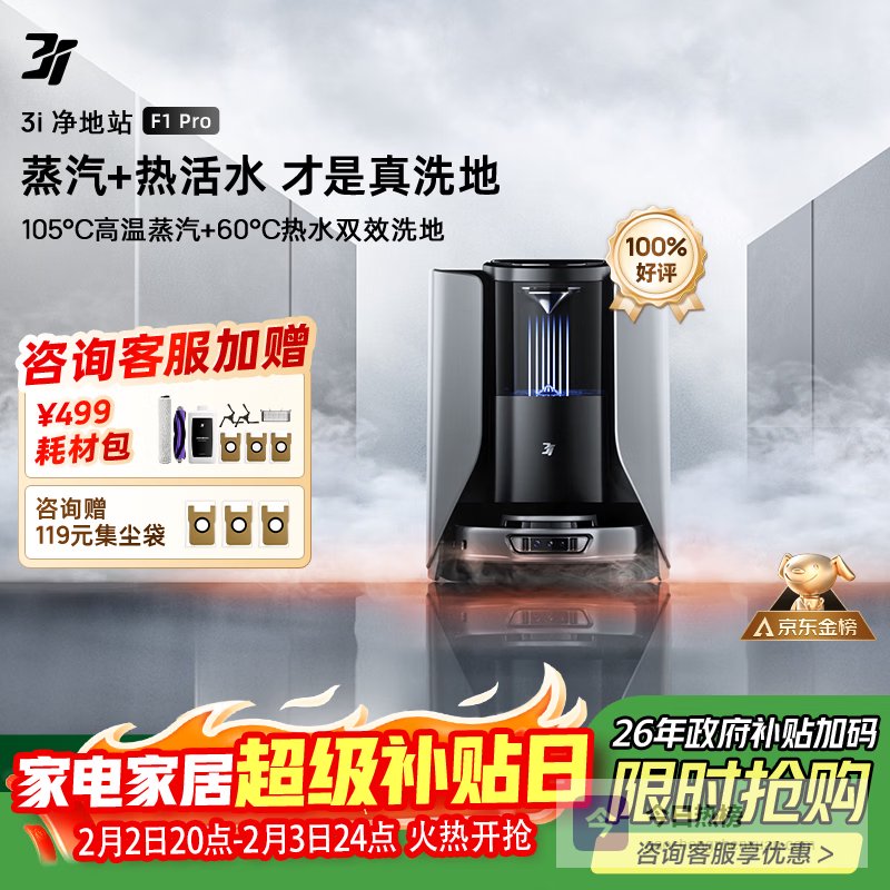 【京东自营】3I【补贴15%】扫地机器人F1Pro蒸汽热水滚筒活洗智能扫拖吸尘一体¥