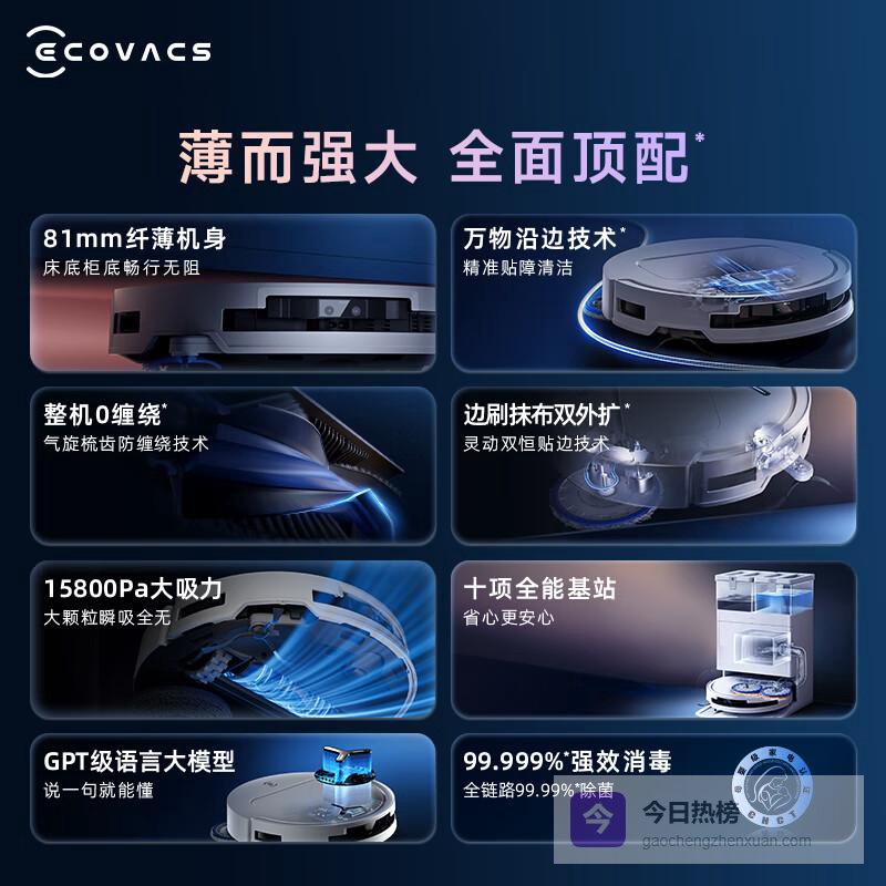 科沃斯成立于1998年,专注于智能家电产品的研发与制造。在扫地机器人领域,科沃斯推出了多款具备强大清洁能力的产品,通过先进的导航技术和强效吸尘系统,能够轻松应对各种地面污垢。其智能回充、定时清扫等功能,让用户的清洁工作变得更加高效便捷。此外,科沃斯还重视用户体验,通过持续的技术创新,致力于为家庭带来更优质的生活方式。