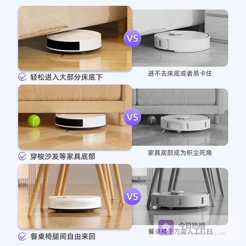 超薄机身:轻松穿梭于家具之间,不放过任何一个清洁死角。