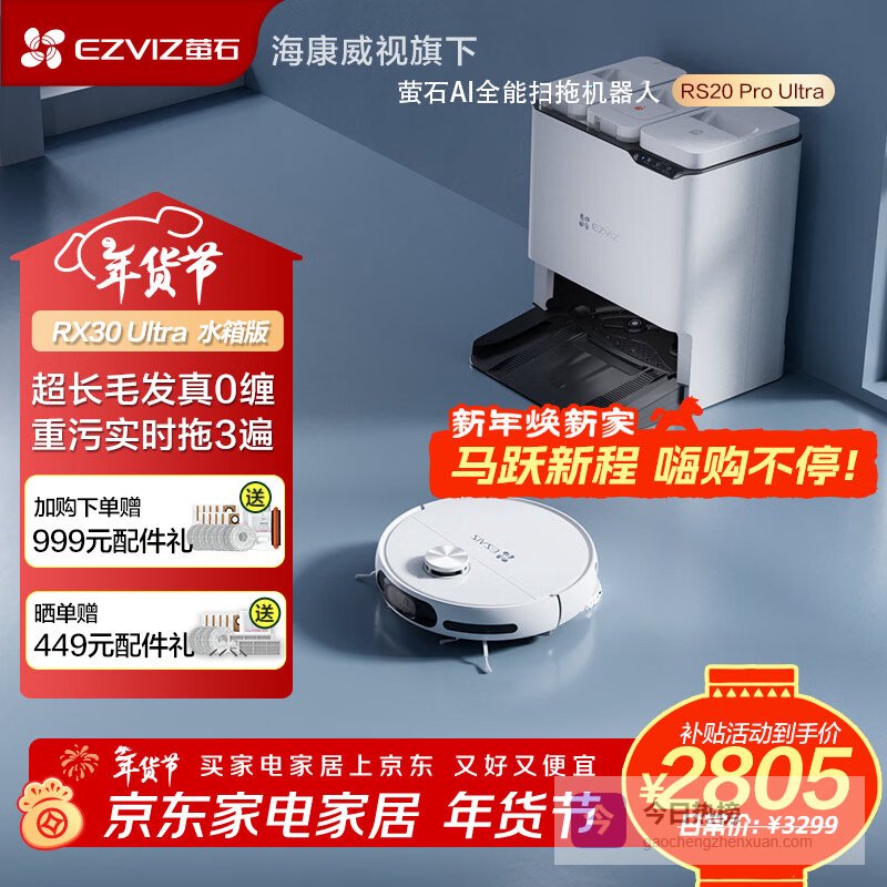 【京东自营】萤石AI全能扫地机器人RS20ProUltra扫拖一体自动清洗全自动AI复拖0缠绕海康威¥