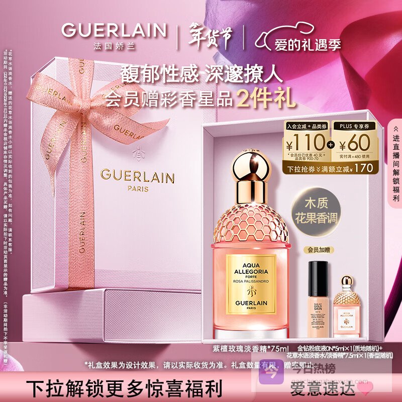 娇兰(Guerlain)花草水语紫檀玫瑰淡香精75ml香水香氛彩妆礼盒生日新年情人节礼物¥