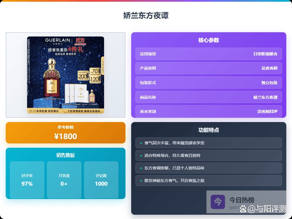 娇兰淡香水系列选择真的挺多的,不知道怎么选?那就先从你喜欢的香调入手!比如,如果你喜欢东方调的神秘和温暖,那娇兰东方夜谭绝对值得一试,它那种琥珀、檀香和玫瑰交织的味道,成熟有韵味,很适合在比较正式的场合用,能让你气场全开。或者你喜欢清新一点的,那娇兰花草水语系列就更适合你,像清柚乌木,柚子的清新和乌木的沉稳结合,日常通勤或者周末休闲都很OK,不容易出错。反正根据自己的喜好来选,总能找到适合你的那一款。