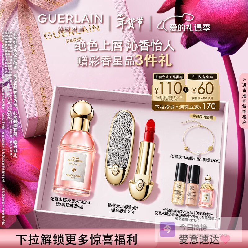 娇兰(Guerlain)唇香套装礼盒钻冕女王壳+唇膏214+玫瑰淡香水40ml新年情人节礼物¥