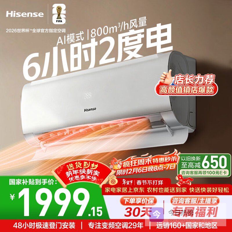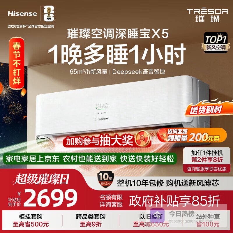 【品牌直营】海信空调深睡宝X5世界杯定制空调大1.5匹AI洁净新风空调DeepSeek语音智控国家补¥
