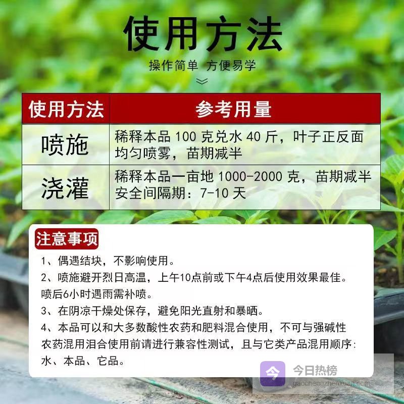 1️⃣ 双效合一:同时补充磷和钾两大关键元素,既能促进根系发育,又能增强抗倒伏能力 2️⃣ 全周期适用:从苗期到结果期均可使用,特别适合小麦抽穗期和玉米灌浆期关键补肥 3️⃣ 应急修复:对受旱、受涝作物有快速恢复效果,48小时可见新叶舒展