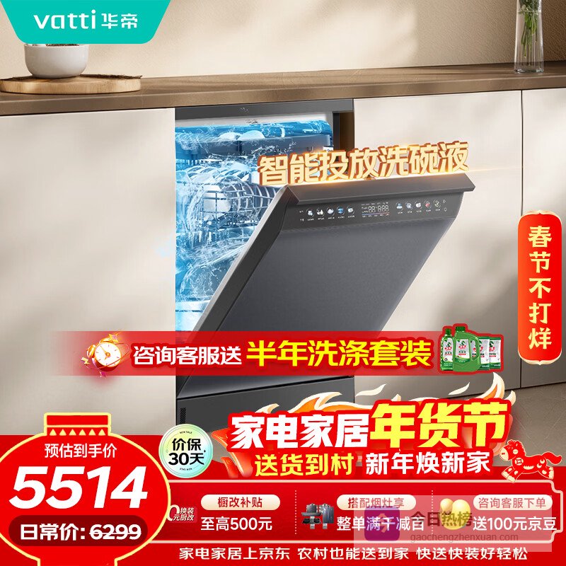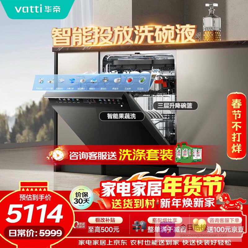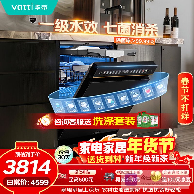 推荐理由:华帝VATTI D3000洗碗机这机器真心不错,我最近刚入手一台。它有18套的大容量,三层碗篮设计,真的可以一次搞定全家人的餐具。而且,它的洗净能力超一流,经过中家院认证,达到了一级洗净覆盖标准,这可不是吹的。再说说烘干功能,105℃热风烘干,双热风风道,这温度够狠,保证餐具干透,不留水渍。