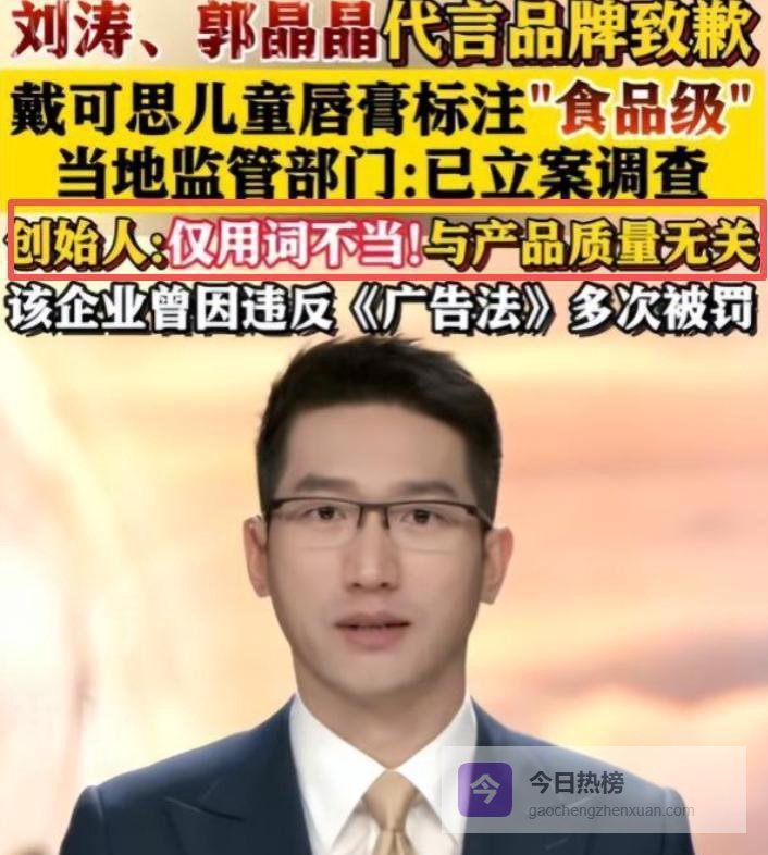 戴可思在推一款婴儿护唇膏的广告里,说这是“食品级润唇膏”,还标着“宝宝误舔无忧”。许多家长根本没仔细看产品细节,就直接买了,毕竟“郭晶晶推荐”这几个字,在不少人心里就是品质的代名词。