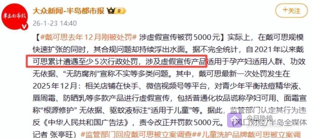 谁也没料到,到了2026年初,她代言的那家婴童品牌戴可思居然被立案调查了。