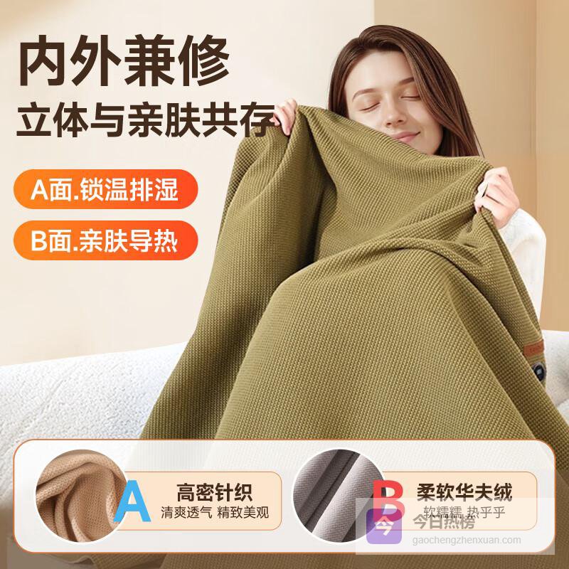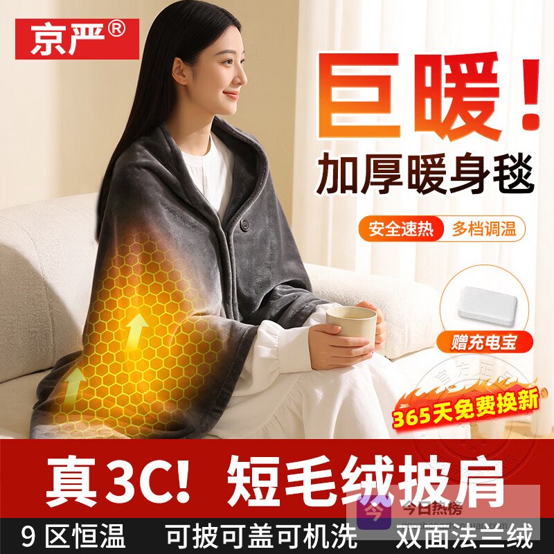 【品牌直营】京严【真3C】发热披肩电热暖身毯办公室充电款加热午睡盖毯单人电热毯加厚法兰绒【无帽款+1¥