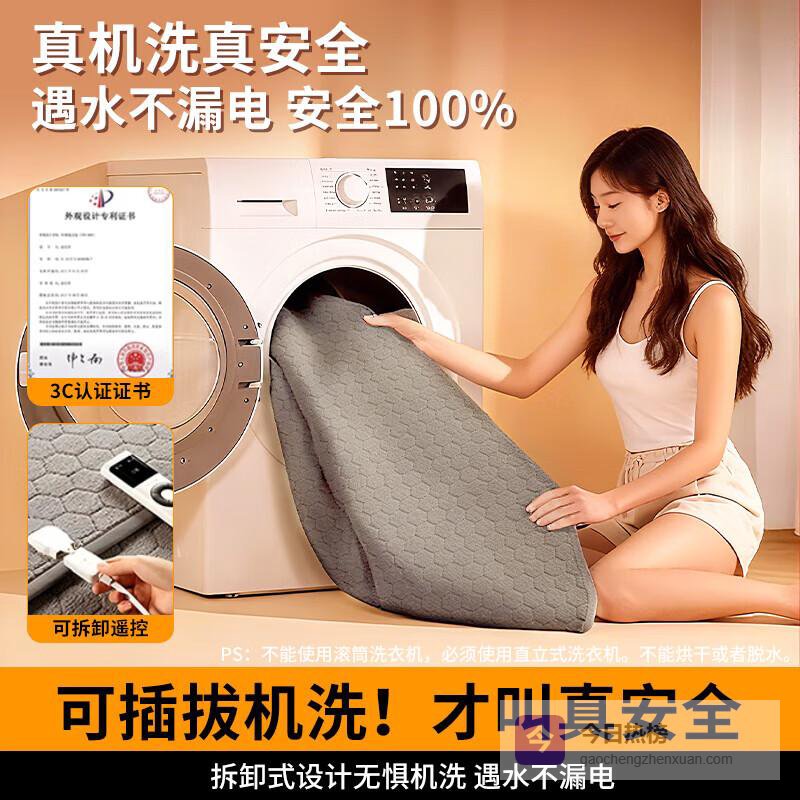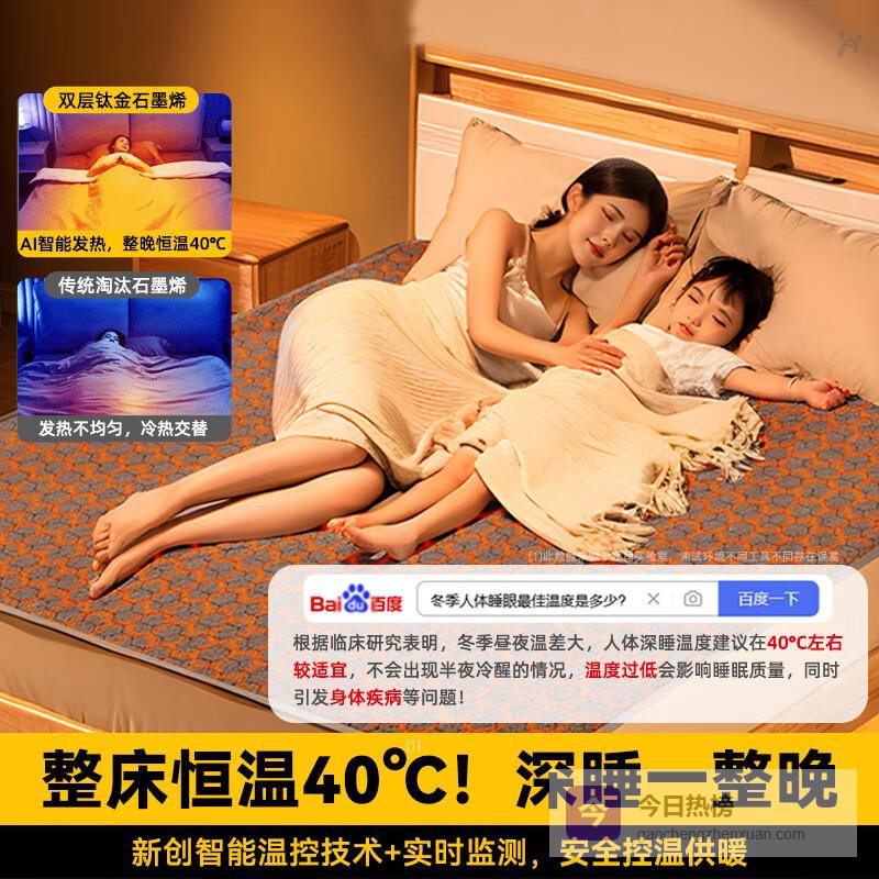 【品牌直营】京严【真机洗】石墨烯电热毯单人电褥子双人水洗除螨双温双控防水家用高奢法兰绒【180*15¥