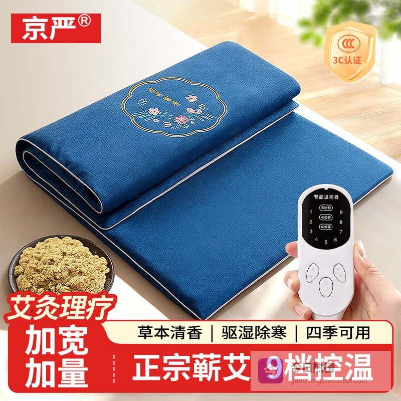 【品牌直营】京严艾绒热敷毯单人家用全身艾草理艾灸电加热盖毯可水洗电热毯蓝色艾灸电热毯【加大150cm¥