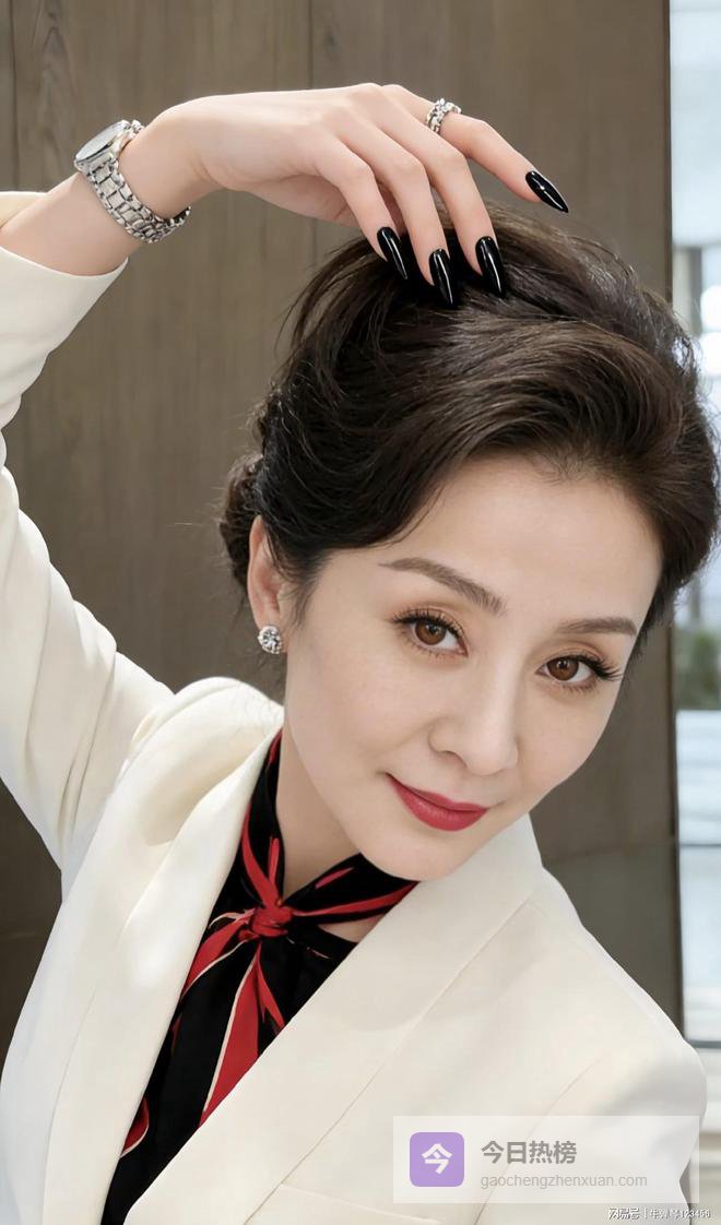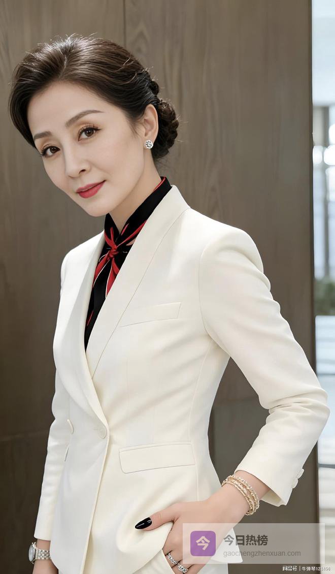 这身打扮的穿搭思路,我觉得核心在于“刚柔并济”.那件米白色收腰西装奠定了专业、干练的基调,颜色清爽.然后用一条色彩丝巾作为内在的“柔软”表达,打破了套装的板正感.所有的珠宝配饰和发型、美甲,都是在强化一种“我不仅能力强,我还活得特别精致”的风格.