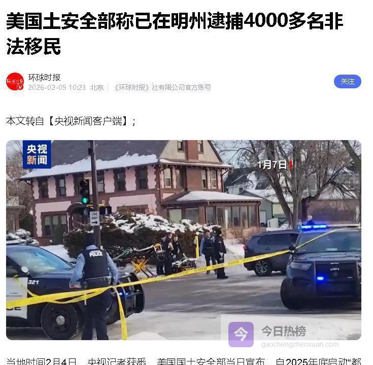 超4000名非法移民被逮捕在俄罗斯宣布重大消息的同一天,美洲本土也传出了重要资讯,当地时间2月4日,美国国土安全部突然举行新闻发布会,宣布了一项“执法成就”。